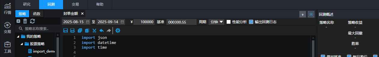 并且在模拟客户端里的回测功能没有时间限制,全天候都能够运行。
