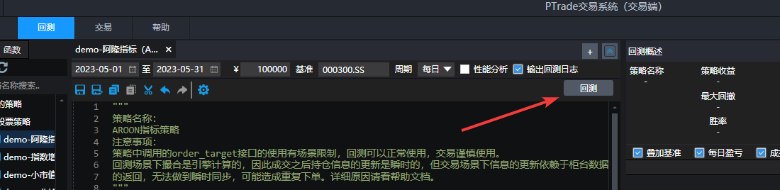 而国金的ptrade回测功能放到模拟客户端。